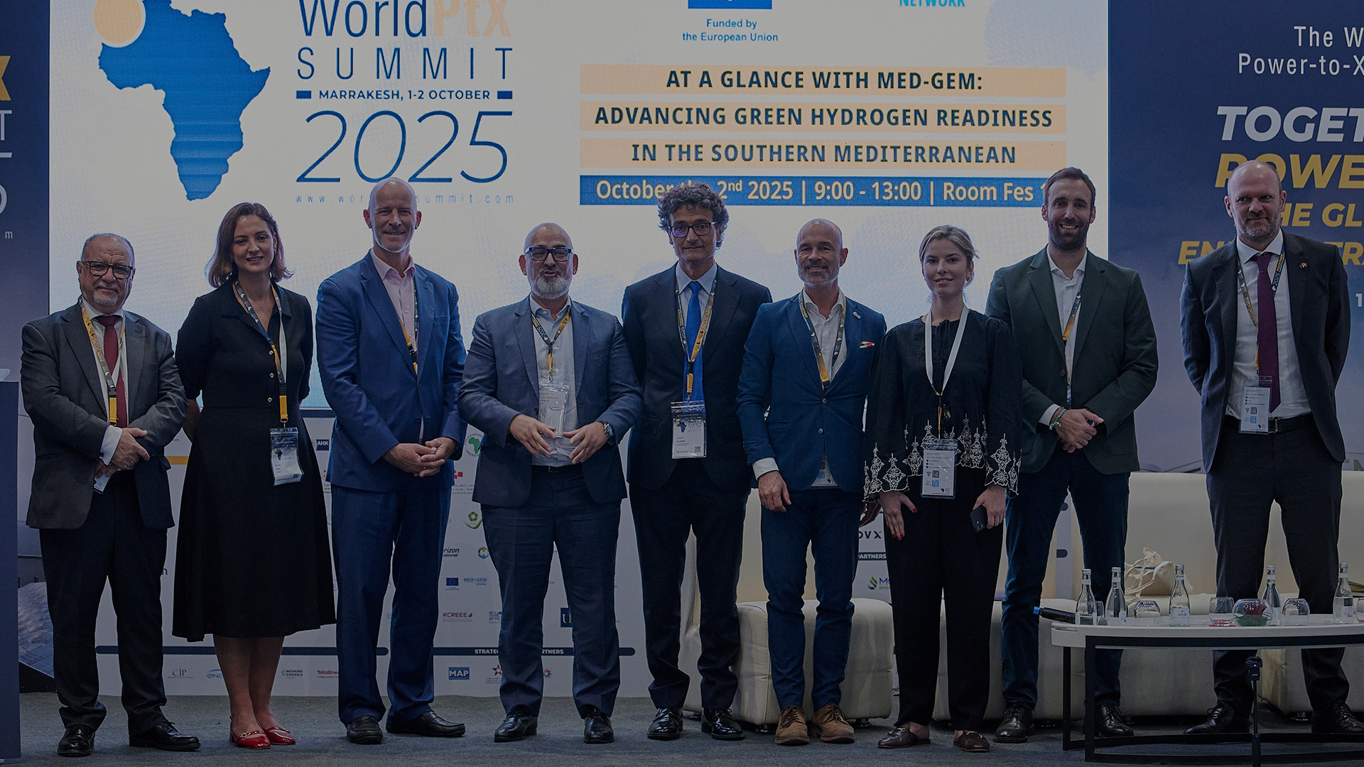 The MED-GEM project, supporting Green Electrons and Molecules’ (GEM) development in the Southern Mediterranean Neighbourhood, is an initiative funded by the European Union that aims to create and operate a sustainable and self-sustaining Network in the Southern Neighbourhood region. By convening dialogue and collaborative activities between key energy stakeholders, MED-GEM activities facilitate and promote the growth of the GEM industry, in particular Renewable & Green Hydrogen, at regional level. The Network also aims at raising awareness on the imperative need for an accelerated clean energy transition. The MED-GEM network is structured around five thematic components: